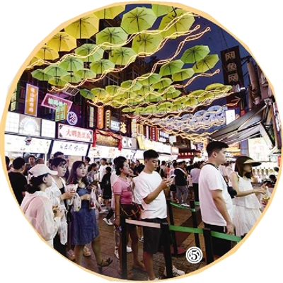 ⑤台东步行街获评“山东省旅游休闲街区”。图为夏日的“恣儿街”商家门口排起长队。 崔冬妮 摄