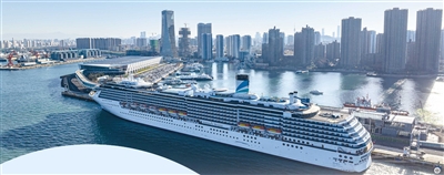■①青岛国际邮轮母港今年接待邮轮21个航次,预计明年航次超40个。图为“地中海”号邮轮。 修仕轩 摄