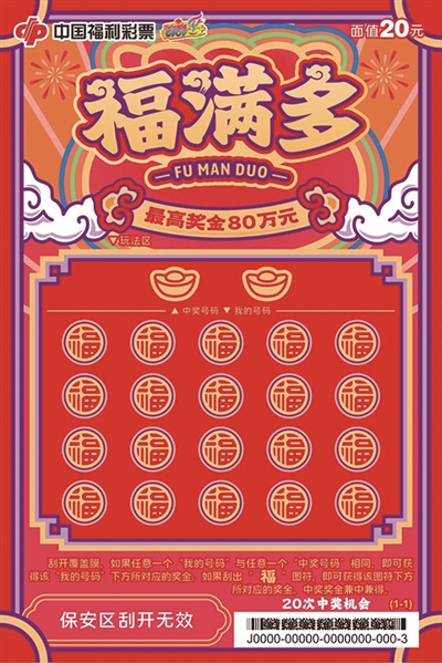 新年伊始,福彩刮刮乐家族又添“新丁”!吉祥喜庆的“福满多”,带着满满的祝福和好运,在岛城上市。