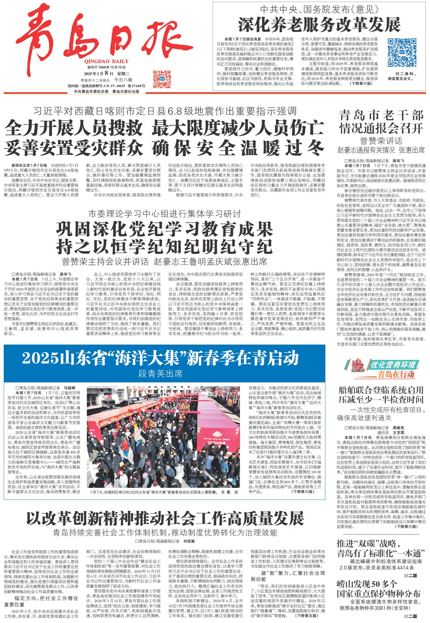 本报1月7日讯 1月7日,正值农历传统节日腊八节,2025山东省“海洋大集”新春季启动仪式在城阳区举办。活动以“聚山东好品 赶文化大集 过康乐春节”为主题,通过丰富多彩的活动和展示,为市民游客带来一场别开生面的海洋文化盛宴,让广大市民游客尽享山东海洋文化魅力与新春节庆氛围。省政协副主席段青英出席活动。
