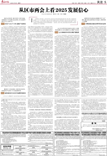 挺膺担当,阔步前行。时至岁末年初,青岛各区市两会陆续启幕,锚定目标、凝心聚力,绘就新的奋进蓝图。1月7日,市南区第十九届人民代表大会第四次会议、即墨区第十九届人民代表大会第四次会议、胶州市第十八届人民代表大会第四次会议、平度市第十九届人民代表大会第四次会议开幕。上述区市政府工作报告传递出对2025年共同的展望——坚定信心、鼓足干劲,为奋力推进中国式现代化青岛实践展现新作为、作出新贡献。