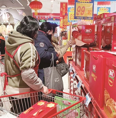 在多家商超,消费者对喜旺产品反响强烈。消费者刘先生来给公司员工挑选过年福利:“喜旺是个几十年的老品牌了,员工都认,说出去有面子。”杨女士说自己是喜旺的老顾客了:“从小就吃喜旺,就爱这个味儿,我的孩子也爱吃,0添加系列吃着很放心。”朱女士说:“喜旺礼盒全是熟食,鸡、鸭、牛肉、烧肉都有,配着菜炒,过年轻松就是一桌大餐。”曲先生说:“我们公司每年都发喜旺,喜喜旺旺寓意好,也有祝公司在新的一年里蒸蒸日上的美好盼头。”
