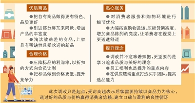 传统商超调改能否为线下零售打开消费新局面?业内人士分析,线下提供差异化、性价比高的商品,以及更好的服务和体验,有助于消费者回到卖场、回到线下商超,一定程度上能刺激顾客消费。