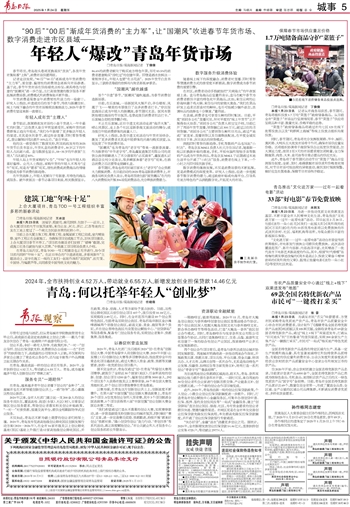 春节期间,青岛也将用好超百家本土“老字号”企业资源大力提振消费。在日前启动的2025青岛迎新春消费季上,市商务局相关负责人表示,青岛将围绕包括“国货潮品”在内的八大消费板块开展206场促消费活动,充分释放消费潜力。