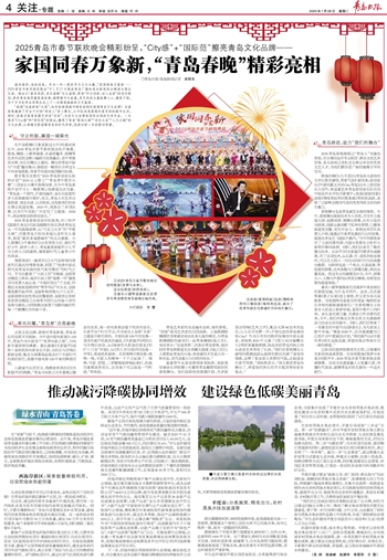 “春晚”这道新春“大菜”,如何在体现城市特色的同时展现青岛文化品牌?本届春晚邀请了百业千行的“青岛人”登上舞台,以市民视角展现丰富多彩的城市生活。同时,春晚召集青岛籍艺术家“回家”,为家乡父老带来国际水准的艺术作品。一台兼具“City感”和“国际范”的晚会,擦亮了青岛“影视之都”“音乐之岛”“人文之城”的文化品牌,以璀璨光影描摹青岛的时代华章,投射对新一年的殷切希冀。