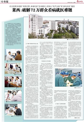 从“医疗洼地”到“病有良医”,莱西医疗体制改革是一场多元共赢的改革。“名院托管、县域托底”,既解决了县域医疗条件不足之困境,又让大城市名医院有了新的发展机遇和空间。更重要的是,莱西医改成为一件实实在在的民生工程,老百姓看病,基本实现了“大病不出市、常见病不出镇、小病不出村”的目标。