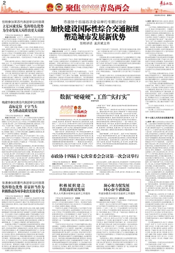 任刚说,加快建设国际性综合交通枢纽,塑造城市发展新优势,需要各方面的积极参与。希望各位政协委员主动开展调查研究、积极议政建言。市政府将努力为大家开展工作创造良好环境。