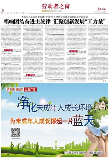 “你猜装载机大王的绝活是啥?”2024年7月,青岛市总工会在抖音平台制作系列短视频,推出“匠人匠艺”话题,传播量达到了876.4万人次,工匠精神成为职工热议的话题。青岛工会建成媒体融合中心,全媒体制作,分渠道传播,每年汇编《劳动铸魂》合辑,推出“工会好新闻”,“劳动光荣、技能宝贵、创造伟大”的主旋律响遍岛城。