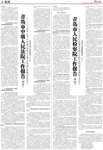——服务更高水平平安青岛建设。贯彻总体国家安全观,审结刑事案件8526件,判处罪犯9948人。常态化推进扫黑除恶斗争,依法严惩杀人、抢劫等严重暴力犯罪,持续提升人民群众安全感。深入推进全民反诈,审结电信网络诈骗及关联犯罪案件1141件。保持惩治腐败高压态势,审结贪污贿赂等职务犯罪案件58件,依法审理联通集团原总经理李国华、国资委原副部长级干部骆玉林等一批原中管干部案件,彰显有腐必惩、有贪必肃的坚强决心。