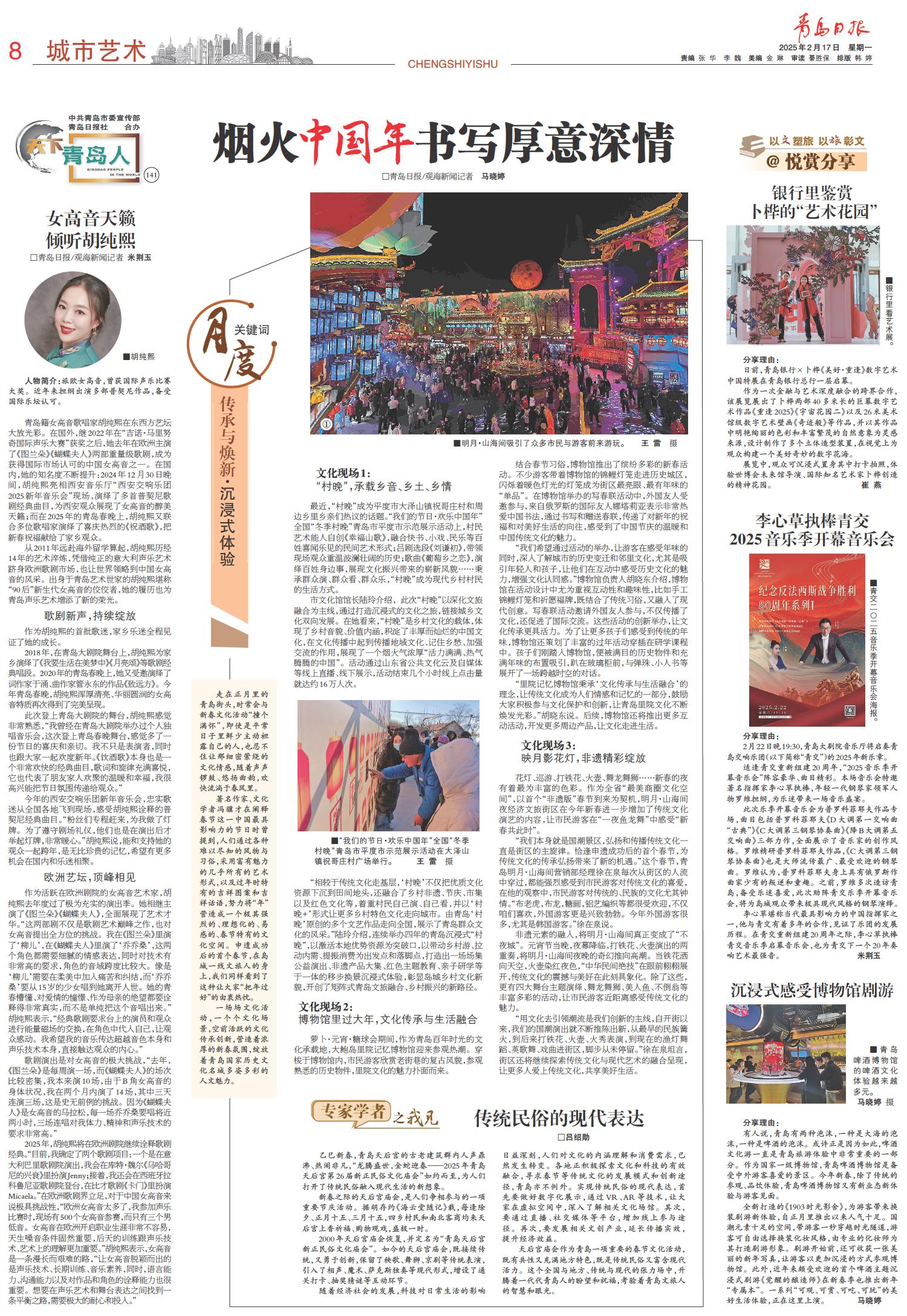 青岛籍女高音歌唱家胡纯熙在东西方艺坛大放光彩。在国外,继2022年在“吉诺·马里努奇国际声乐大赛”获奖之后,她去年在欧洲主演了《图兰朵》《蝴蝶夫人》两部重量级歌剧,成为获得国际市场认可的中国女高音之一。在国内,她的知名度不断提升:2024年12月30日晚间,胡纯熙亮相西安音乐厅“西安交响乐团2025新年音乐会”现场,演绎了多首普契尼歌剧经典曲目,为西安观众展现了女高音的醇美天籁;而在2025年的青岛春晚上,胡纯熙又联合多位歌唱家演绎了喜庆热烈的《祝酒歌》,把新春祝福献给了家乡观众。