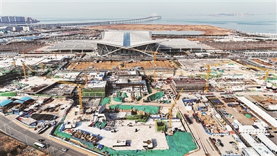 青岛TOD一号工程施工现场一片繁忙。 梁 超 摄