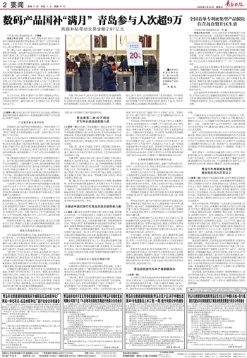 本报2月22日讯 手机、平板、智能手表(手环)三类数码产品购新补贴政策在青岛落地已经“满月”,记者自市商务局获悉,1月20日至2月20日,购新补贴带动交易金额2.97亿元,参与消费者达9.41万人次。