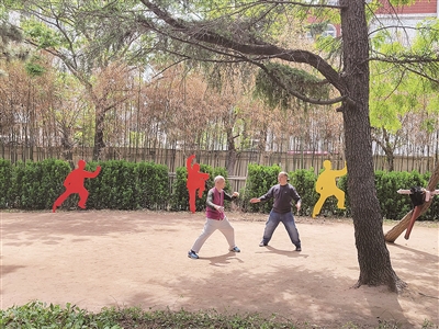 ■紧邻社区的团岛山公园内,专门为老年人设置了运动场所。梁 超 摄