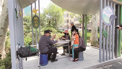■老人们在社区凉亭内打牌娱乐。 梁 超 摄