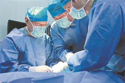 ■侯书健(左一)带领团队为患者手术。 黄 飞 摄