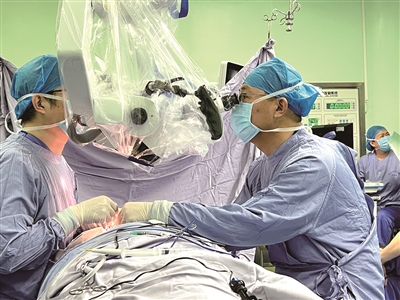 ■靳峰(右)为重症阿尔茨海默病患者实施超显微手术。