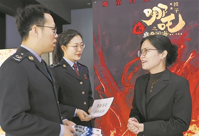 ■春节以来,电影市场持续火热。连日来,国家税务总局青岛市市北区税务局组织税务骨干走进电影放映企业,及时跟进影视类企业经营情况,精准排查企业涉税需求。图为税务人员走访电影放映企业。