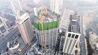 ■航运贸易金融总部大厦项目施工至105米高度,建成后将为浮山湾畔再增一座活力新地标。 梁 超 摄
