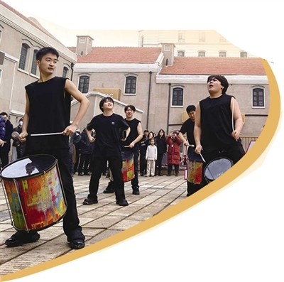 ■22世界音乐厅院内的打击乐表演。 王 雷 摄