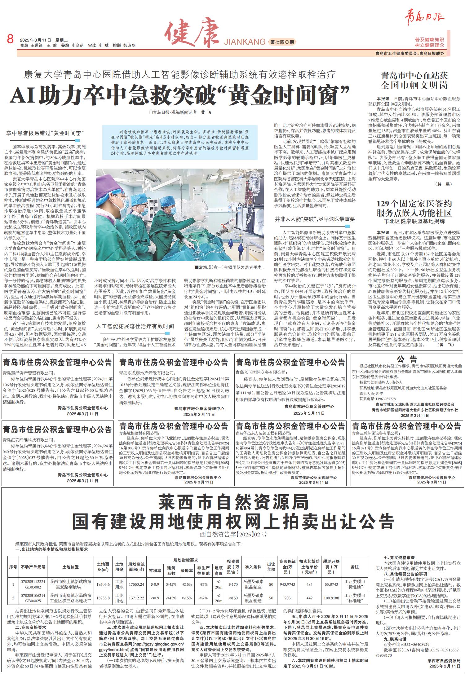 对急性缺血性卒中患者来说,时间就是生命。多年来,传统静脉溶栓“黄金时间窗”被长期“锁定”在4.5小时以内,相当一部分患者被送到医院时已经错过了溶栓的良机。近日,记者从康复大学青岛中心医院获悉,该院卒中中心借助人工智能影像诊断辅助系统,将部分卒中患者的溶栓急救时间窗扩展至24小时,显著降低了卒中患者的死亡率和致残率。