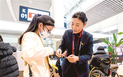 ■青岛胶东国际机场工作人员正在为旅客提供个性化服务。