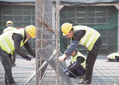 在引黄济青连接线工程取水口附近,一道10余米宽的深沟赫然在目,地上挖掘机、运土车等机械设备轰鸣作响,地下数十名工人在开展箱涵钢筋绑扎工作,现场繁忙而有序,为大干快上做足了准备。