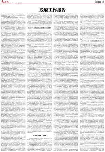 今年是“十四五”规划收官之年。做好政府工作,要在以习近平同志为核心的党中央坚强领导下,以习近平新时代中国特色社会主义思想为指导,全面贯彻落实党的二十大和二十届二中、三中全会精神,按照中央经济工作会议部署,坚持稳中求进工作总基调,完整准确全面贯彻新发展理念,加快构建新发展格局,扎实推动高质量发展,进一步全面深化改革,扩大高水平对外开放,建设现代化产业体系,更好统筹发展和安全,实施更加积极有为的宏观政策,扩大国内需求,推动科技创新和产业创新融合发展,稳住楼市股市,防范化解重点领域风险和外部冲击,稳定预期、激发活力,推动经济持续回升向好,不断提高人民生活水平,保持社会和谐稳定,高质量完成“十四五”规划目标任务,为实现“十五五”良好开局打牢基础。