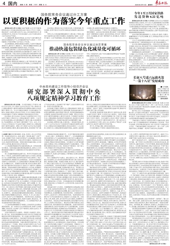 会议指出,要坚持系统治理、协同治理,夯实快递企业主体责任,对上游生产企业、商家和下游消费者加强引导规范,推进全链条治理。要完善快递包装绿色转型的综合性支持政策,有效降低包装、回收、清洗、调拨等运营成本,充分调动各方面积极性,营造绿色发展的良好社会氛围。