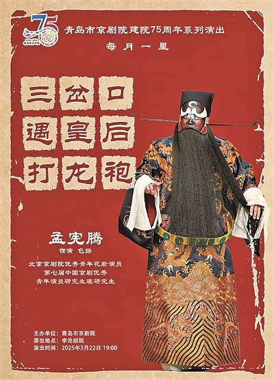 3月22日,李沧剧院将推出裘派名剧《遇皇后·打龙袍》。这是青岛市京剧院“每月一星”的演出项目之一。