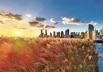 ■在屋顶观赏城市的芦苇夕照。 王 雷 摄