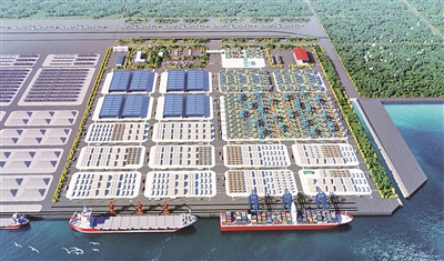 青岛港董家口港区北三突堤7-8#泊位工程效果图。