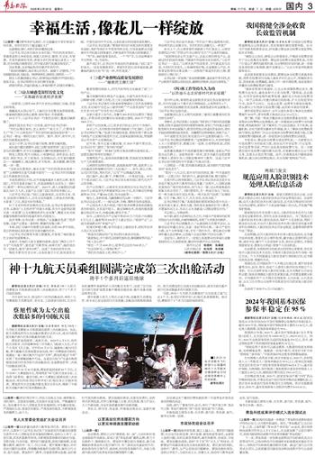 2024年10月30日凌晨,蔡旭哲返回地球22个月后,又作为神十九乘组指令长,带领两名“90”后航天员宋令东、王浩泽飞赴苍穹。截至目前,神十九乘组已圆满完成三次出舱活动,承担的各项空间科学实(试)验任务正在稳步推进。蔡旭哲的太空出舱次数也累计达到5次,刷新了中国航天员舱外执行任务次数新纪录。