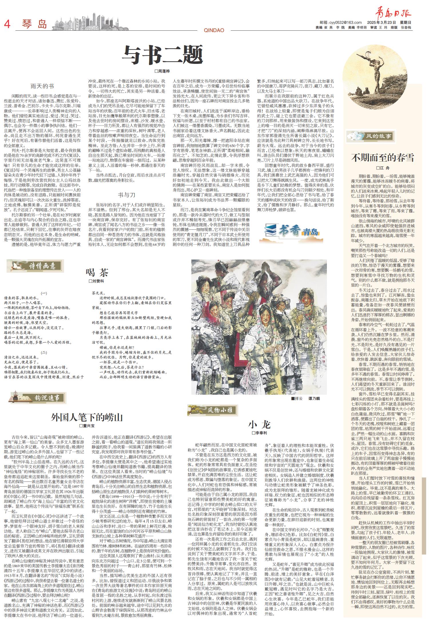 可能是由于自己属小龙的原因,我自己也特别留意那些赞美蛇的好的寓意。还记得上中学的时候去崂山仰口的太平宫,对那里的“太平晓钟”印象深刻。对这处名胜印象深刻很重要的原因是因为那块石碑的背面刻了一首诗,诗的第一句便是“闻说仙方蛇化龙”,我当时曾经认真地把这首诗抄在了笔记本上,至今还能背诵,这也算是生肖留给我的美好印象了。
