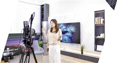 ■李沧区国源通创意产业园中,主播正在进行直播带货。张 鹰 摄