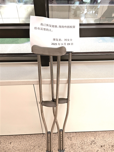 就在上周,市民刘女士将一副自己用过的拐杖送到山东大学齐鲁医院(青岛)。“我前段时间脚受伤了,右脚踝踝骨骨折,现在康复了,拐用不上了,那么新,扔了可惜,我就想着送到医院去,给那些有需要的人。”刘女士朴实的话语传递出最真挚的善意。
