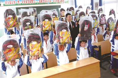 ■“微尘”前往城阳体育学校,为西藏足球少年们送上足球、水杯等物资。