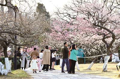①3月25日,青岛中山公园的梅花进入盛花期,吸引市民游客前来赏花踏青。 于 滈 摄