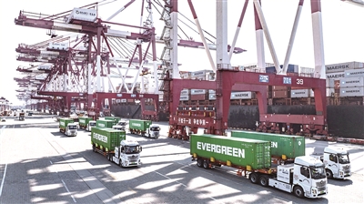 ■山东港口青岛港的氢能集卡车实现规模化、常态化应用。