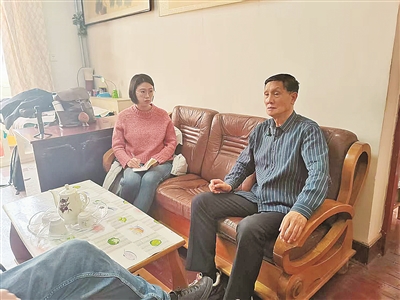 ③《青岛日报》记者采访沙洪儿子沙大海。