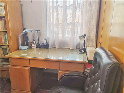 ①沙洪家中使用多年的书桌。 蔺君妍 摄