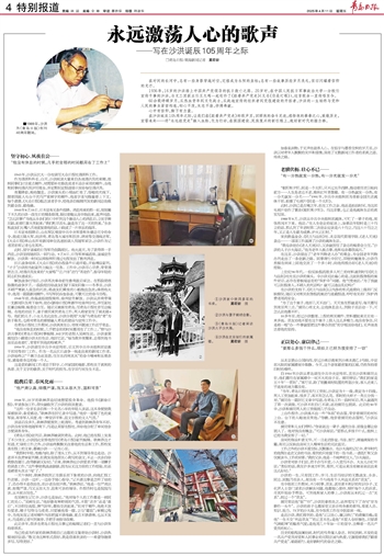 在沙洪诞辰105周年之际,让我们在《跟着共产党走》的歌声里,回顾他的奋斗足迹,感悟他的拳拳之心,致敬历史,宣誓未来——将“永远跟党走”融入血脉、化为行动,在强国建设、民族复兴的新征程上,跑好新时代的接力棒。