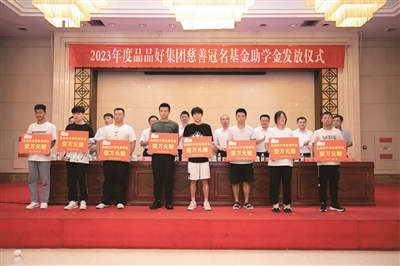 青岛品品好粮油集团向学子发放助学金。