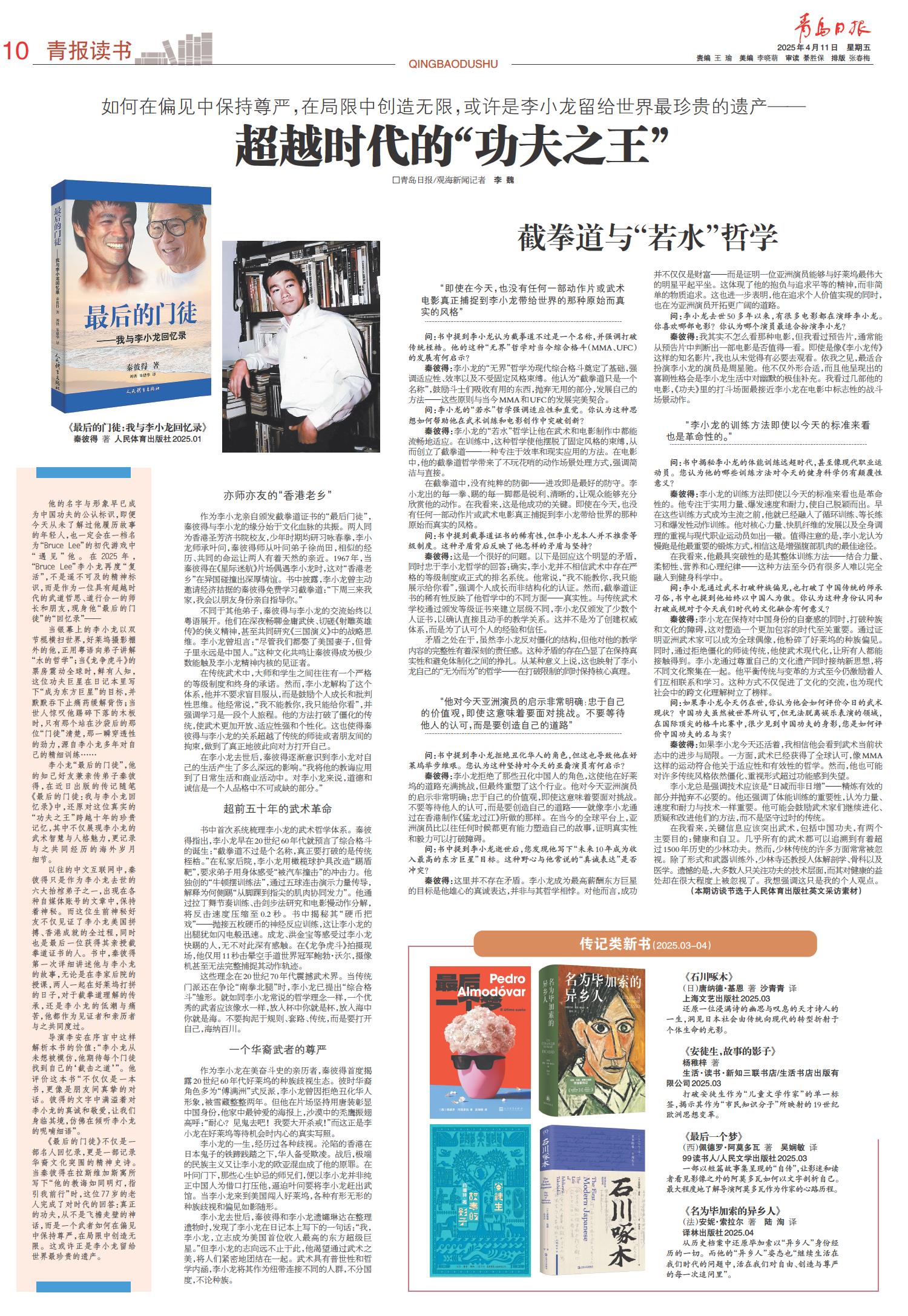 李小龙“最后的门徒”,他的知己好友兼亲传弟子秦彼得,在近日出版的传记随笔《最后的门徒:我与李小龙回忆录》中,还原对这位真实的“功夫之王”跨越十年的珍贵记忆,其中不仅展现李小龙的武术智慧与人格魅力,更记录与之共同经历的海外岁月细节。