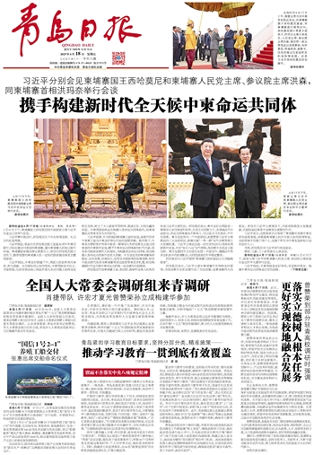 本报4月17日讯 15日至16日,全国人大常委会副委员长肖捷率调研组在青岛开展“十五五”规划纲要编制财税改革发展专题调研。全国人大财经委副主任委员、常委会预算工委主任许宏才,全国人大常委会预算工委副主任夏光等参加调研。山东省委常委、青岛市委书记曾赞荣,省人大常委会副主任孙立成,青岛市人大常委会党组书记、主任梅建华参加有关活动。