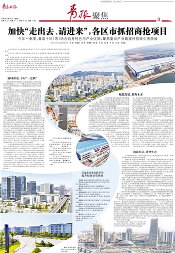 区市强则青岛强。作为青岛经济社会发展的主阵地、主战场,各区市招商引资工作的推进情况最能体现这座城市的发展成色。今年一季度,青岛各区市积极抓招商、抢项目,统筹用好驻点招商、头部企业招商、基金招商等方式,提升招商引资质效,招引落地了一批科技含量高、创新能力强、发展潜力大的高质量项目,为现代化产业体系建设提供有力支撑。