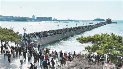 ■栈桥是来青游客必打卡的景点之一。 王 雷 摄