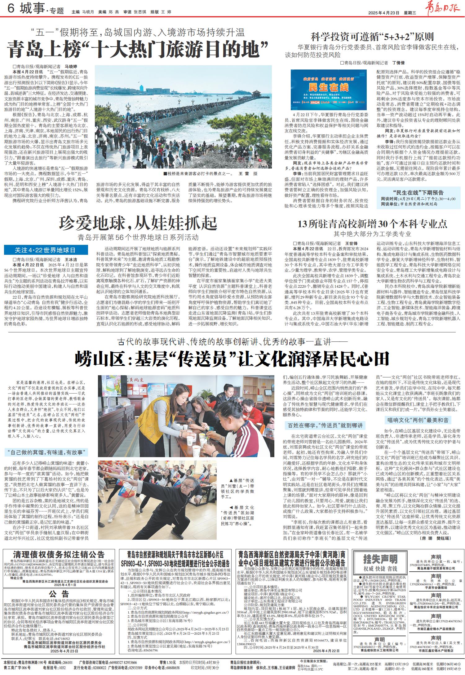 本报4月22日讯 “五一”假期临近,青岛旅游市场热度持续攀升。携程发布的《五一旅游出行预测报告》(以下简称《报告》)显示,今年“五一”假期旅游消费呈现“长线爆发、跨境双向升温、县域逆袭”三大特征。在经济发达、交通便捷、文旅资源丰富的城市竞争中,青岛凭借独特魅力成为热门目的地榜单常客,上榜“全国十大热门旅游目的地”“入境游十大热门目的地”。