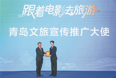 ■4月27日,“跟着电影去旅游”青岛文旅专题推介会在西海岸新区星光岛举办,山东籍电影人范丞丞成为“青岛文旅宣传推广大使”。 杨志文 摄