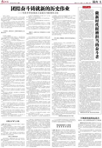 在“五一”国际劳动节来临之际,党中央、国务院召开大会,隆重庆祝中华全国总工会成立100周年,表彰一批全国劳动模范和先进工作者。这是党的二十大明确新时代新征程党的中心任务后,首次开展全国性劳模表彰,必将激励全党全国各族人民以更加饱满的热情、更加顽强的奋斗、更加智慧的创造,为推进中国式现代化挺膺担当、不懈奋斗。