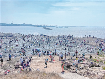 ■红岛蛤蜊节举办期间,市民游客体验原生态赶海乐趣。